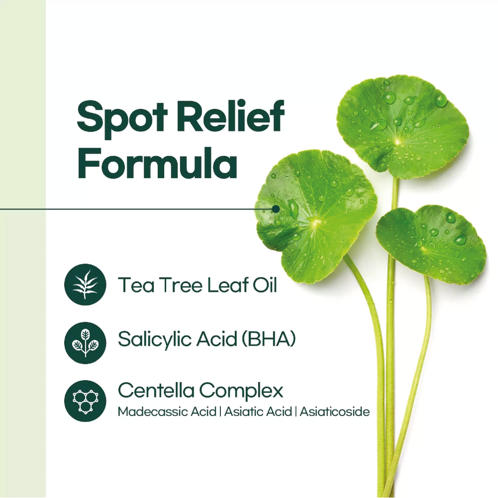 Contienen extracto de centella asiática, aceite de árbol de té y ácido salicílico (BHA), ideales para calmar inflamación, absorber sebo y acelerar la curación.