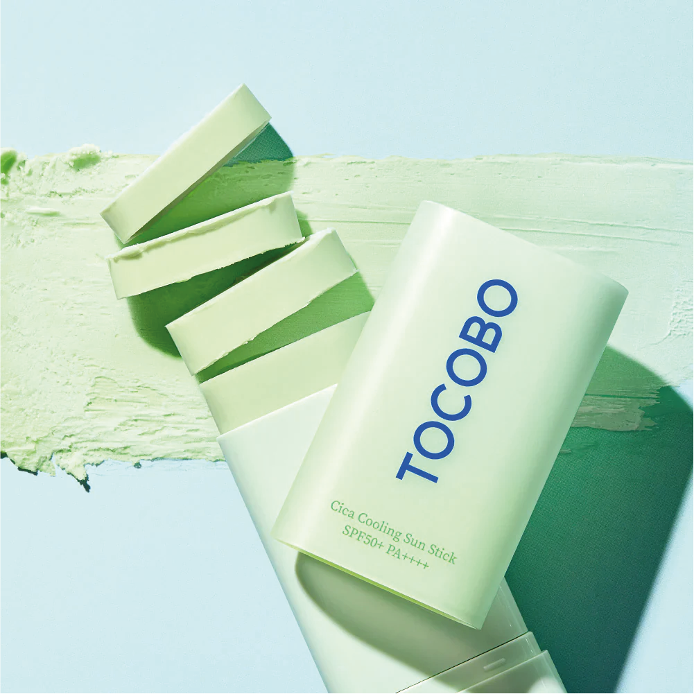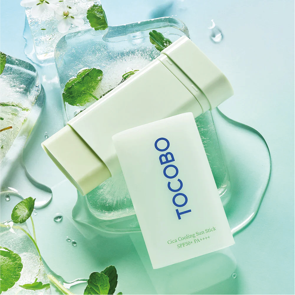 El TOCOBO Cica Cooling Sun Stick es un protector solar que combina protección alta (SPF50+ PA++++) con propiedades calmantes y refrescantes. Está formulado con ingredientes específicos para aliviar y proteger la piel del daño solar y mantenerla hidratada.