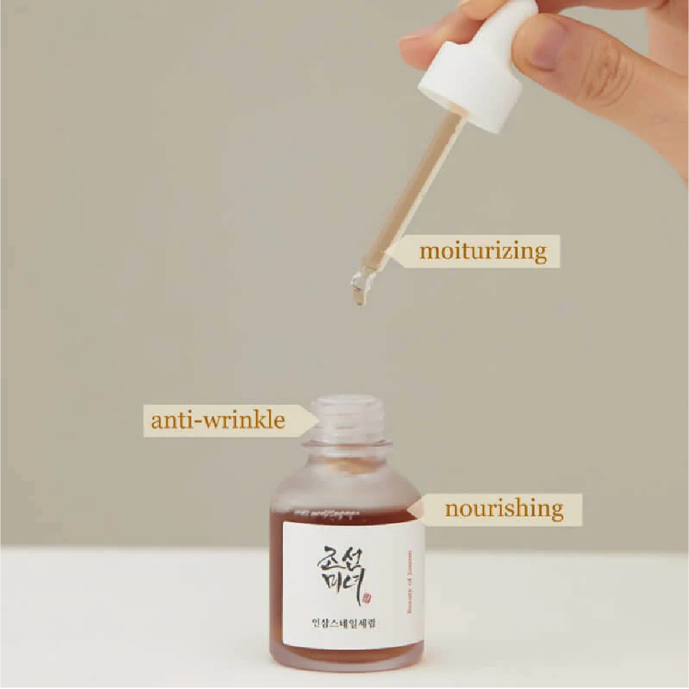 Suero hidratante y reparador inspirado en la medicina herbal coreana (hanbang), elaborado con un 63 % de agua de raíz de ginseng y 3 % de filtrado de mucina de caracol. El ginseng aporta antioxidantes, mejora la elasticidad y combate signos de envejecimiento, mientras que la mucina regenera la piel, repara daños y fortalece la barrera cutánea.